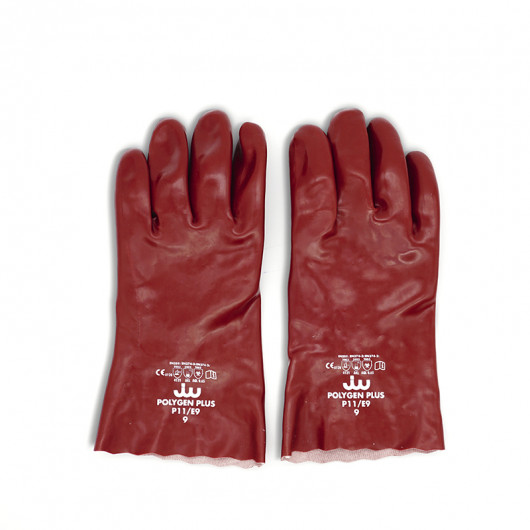 Guants de PVC sobre suport de cotó. Proporciona una bona resistència a l'abrasió i als olis, productes químics i derivats del petroli.
