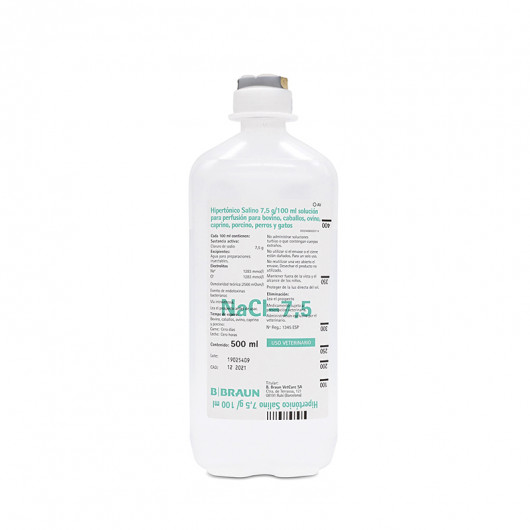 Solució electrolítica per a la perfusió intravenosa que conté de clorur sòdic. Indicada en tractaments d'urgència quan es necessita recuperar ràpidament el volum circulatori (hemorràgies, xoc endotòxic, xoc sèptic o xoc hipovolèmic), en les espècies bovina, equina, ovina, caprina, porcina, gossos i gats.