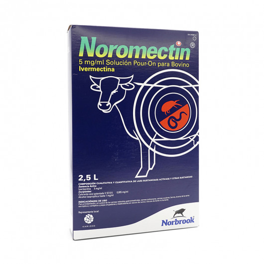 Dewormer pour-on indicated against parasitosis in cattle caused by strains sensitive to ivermectin: round gastrointestinal, respiratory and eye worms, lice, hypodermosis and scabies mites.