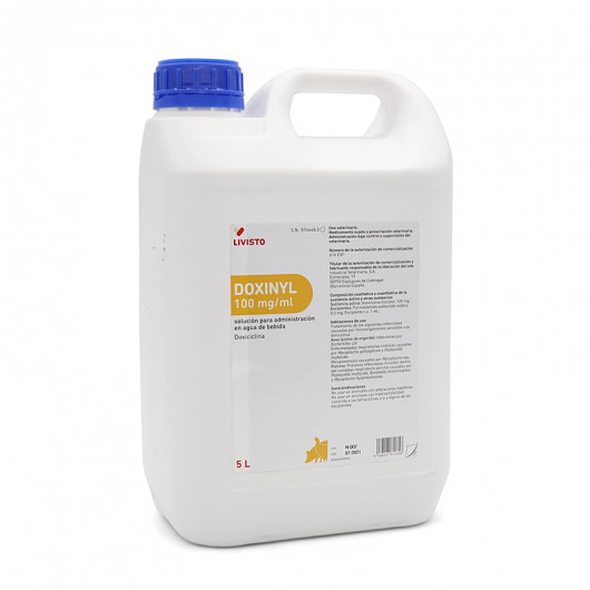 Antibiótico indicado para el tratamiento de infecciones causadas por microorganismos sensibles a la doxiciclina. Concretamente, es activa frente a bacterias Gram (-) (Escherichia coli, Pasteurella multocida y Bordetella bronchiseptica) y Mycoplasma spp. En pollos de engorde, para el tratamiento de la Enfermedad Respiratoria Crónica (ERC) causada por M.gallisepticum o P.multocida, otras micoplasmosis provocadas por Mycoplasma spp y el tratamiento de infecciones causadas por E.coli. En el ganado porcino, está indicada para el tratamiento del Complejo Respiratorio Porcino (CRP) provocado por P.multocida, B.bronchiseptica y M.hyopneumoniae. *Ver ficha técnica.